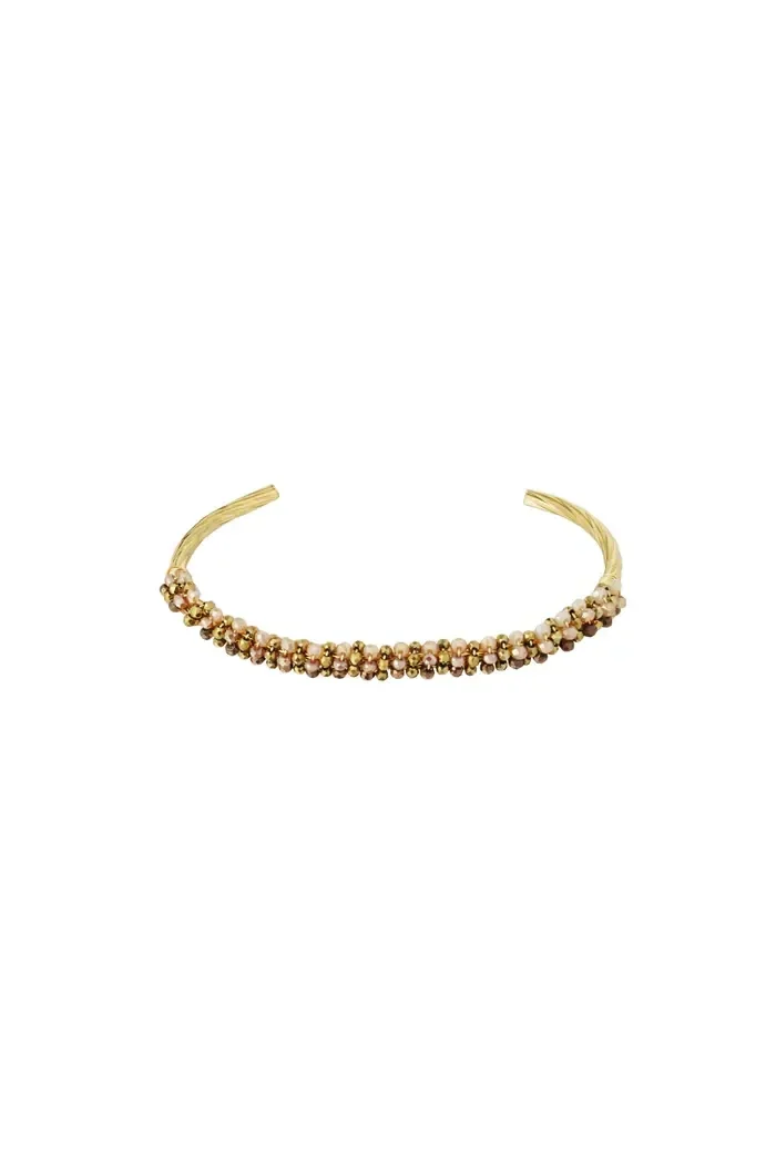 De Kralen Fiesta armband in beige en goud is een stijlvolle en veelzijdige accessoire die perfect is voor elke gelegenheid. Deze armband combineert de subtiele elegantie van beige met de luxueuze glans van goud, waardoor het zowel ingetogen als opvallend is. De armband is gemaakt van hoogwaardige materialen, waardoor hij niet alleen mooi is, maar ook duurzaam en comfortabel om te dragen. Of je nu naar een feestje gaat of gewoon je dagelijkse outfit wilt verfraaien, deze armband voegt een vleugje verfijning en glamour toe.