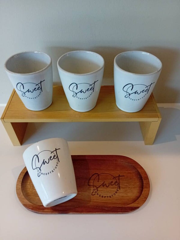 De mokken worden gemaakt met een lasermachine. Dat houd in dat er een laagje met een laser wordt weggebrand waardoor er reliëf en kleur verschil ontstaat. Het zijn dus geen stickers!