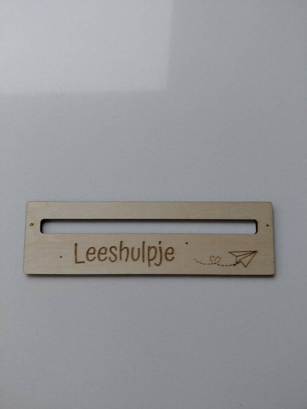 LET OP: Geef in het opmerkingsveld de naam door die wij mogen graveren op het leesplankje. Bij geen naam krijg je het Leeshulpje geleverd zoals op de foto.