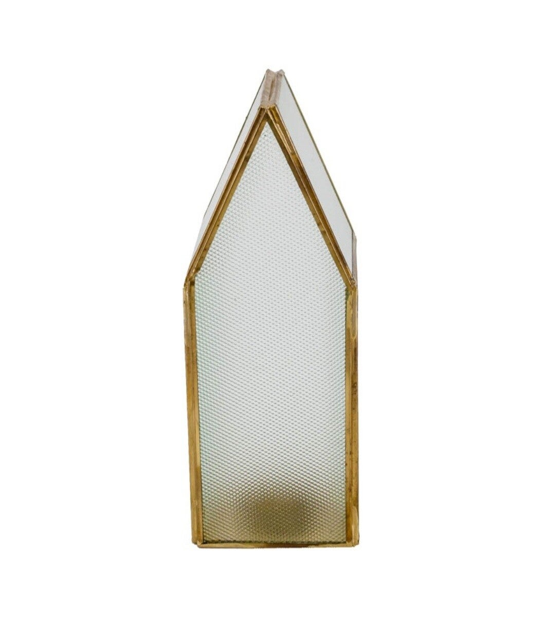 Voeg direct sfeer toe aan je interieur met dit stijlvolle metalen windlicht in huisvorm. Dankzij het gouden frame en het fijne glaswerk straalt het warm, gezellig licht uit. Met zijn compacte formaat past het perfect op een vensterbank, tafel of dressoir. Ideaal als decoratie én als cadeau.